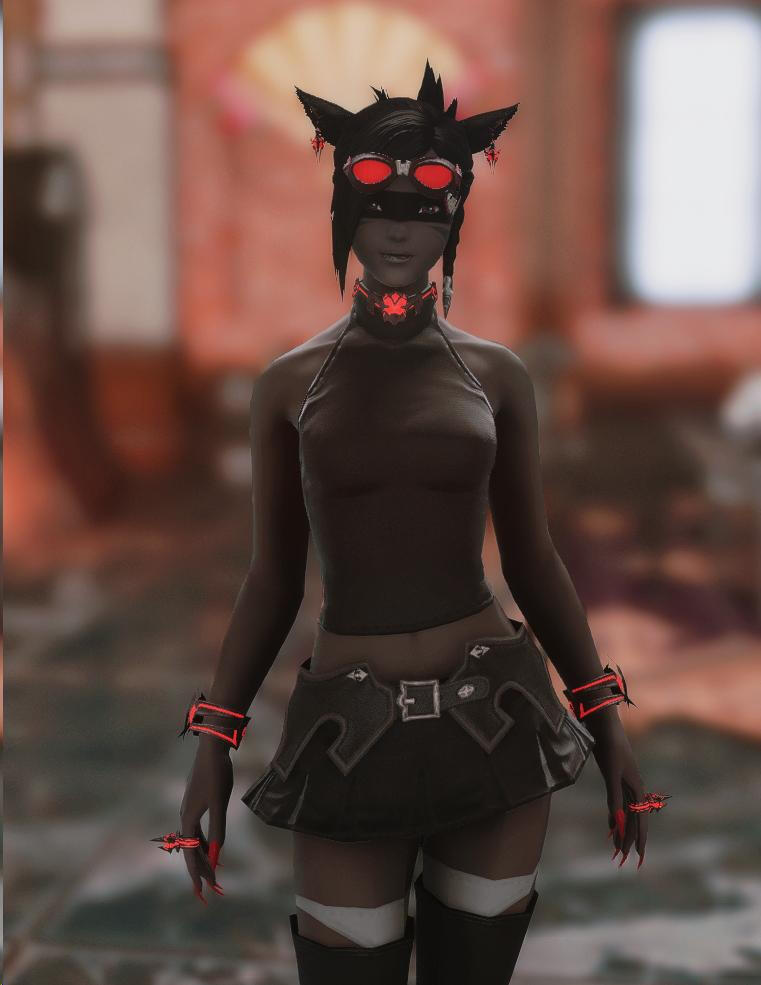 Decription: Maze is on the tall side for her race at 5' 4" She keeps in great shape, her body tone and obvious definition of muscles with no fat. She still has nice curves and smooth skin. Her ears and tail are a bit short and fluffy. Her hair she changes often from style to color, usually choosing a combination of Black and white most the time. She also black face paint for her eyes. Her clothing is always high quality from her dresses, gowns to short skirts as she has no qualms about showing skin. Most her footwear has heels giving her a little bit more height.Job/Life: She was trained as a hunter and tracker since she was very young. Not wanting to follow in the old ways of her family she left her tribe around twelve years old and went on her own. She now makes her coin usually from scouting for caravans, hunting parties etc also tracking down, capturing or killing wanted fugitives or troublesome individuals. She is not an assassin by trade, but has no problem taking a job that requires eliminating the target. Her main weapon of choice is her bow, but she is trained in blades. Over the years she had an infinity to magic of the elements and she continues to learn how to control and harness this power.
